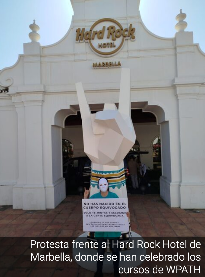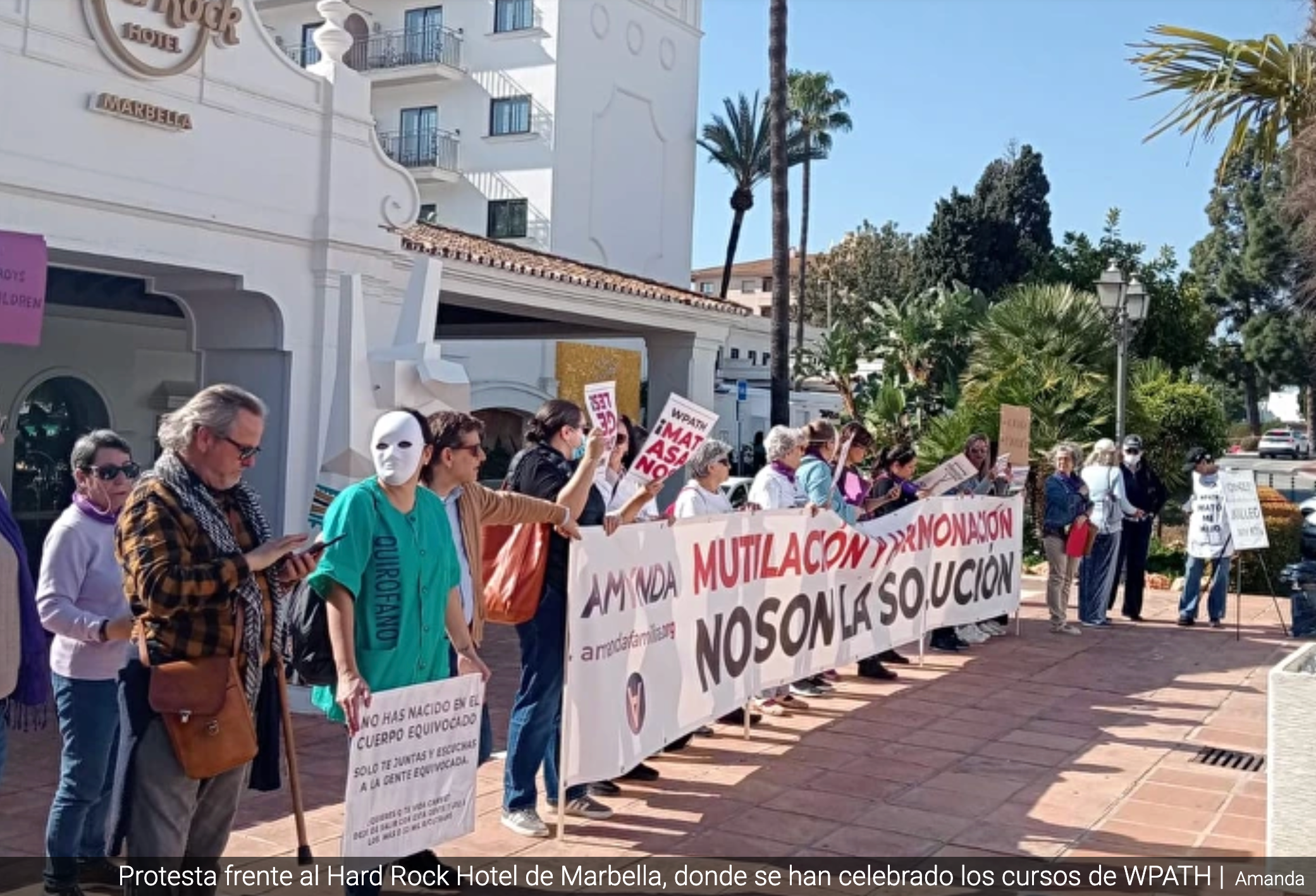 Аманда Матери Аманды, группа, состоящая из семей подростков с быстро развивающейся гендерной дисфорией, провели в эту среду демонстрацию против проведения конференции Всемирной профессиональной ассоциации по вопросам здоровья трансгендеров (WPATH) в Марбелье, которая, по их утверждению, «защищает гормональную терапию и операции для несовершеннолетних, идентифицирующих себя как трансгендеры». При поддержке десятков феминистских ассоциаций эти матери предупреждают об опасности подобных курсов, «направленных на навязывание специалистам ненадёжных и недостаточно проверенных обоснований, чтобы принуждать детей к необратимым вмешательствам и способствовать развитию медико-фармацевтического бизнеса, основанного на гормональной терапии и хирургии». Таким образом, они настаивают на том, что «в то время, когда такие страны, как Великобритания, Швеция, Финляндия, Норвегия, Дания, Ирландия, США и Австралия, отказались от подобной терапии или начали её критический пересмотр, Испания может стать золотым прибежищем псевдомедицины, которая, игнорируя доказательства и принцип «не навреди», проводит эксперименты на здоровых телах наших дочерей и сыновей».